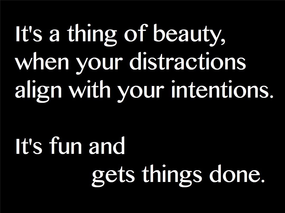 It’s a thing of beauty, when your distractions align with your intentions. It’s fun and gets things done.