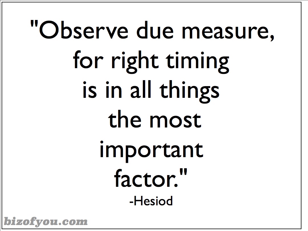 As Hesiod indicated over 2700 years ago, “Observe due measure, for right timing is in all things the most important factor.”
