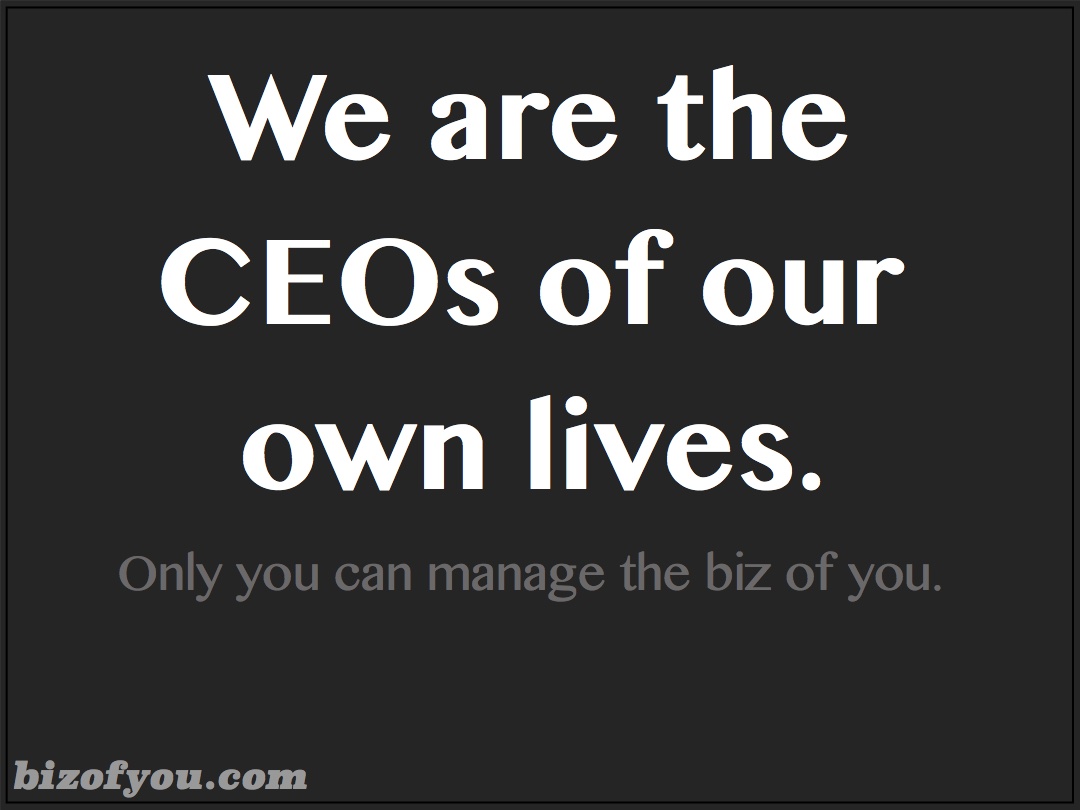 There’s a good Forbes article I came across today relating we are the CEOs of our own lives. It goes on to talk about dealing with people who have (or think they have) power. You can build it or borrow it. You can look for power outside or within. Managing the business of you over times creates power from within and allows you to adapt to our ever-changing world. Managing the business of you increases your power in your interactions and life in general.