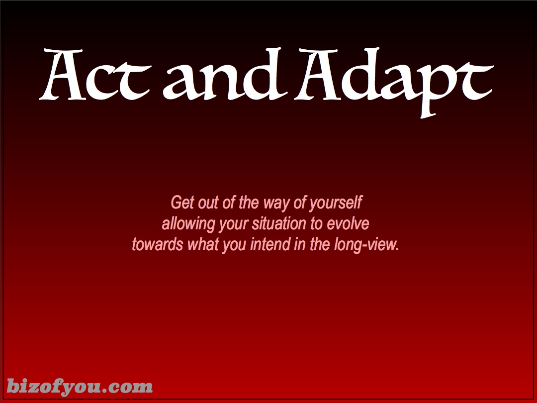 This approach is letting go of the immediate consequences and adopting a long-view. So don’t delay, do something now about improving your situation. If that doesn’t work out, then do something else all the while keeping your vision of what you intend over the long-term.