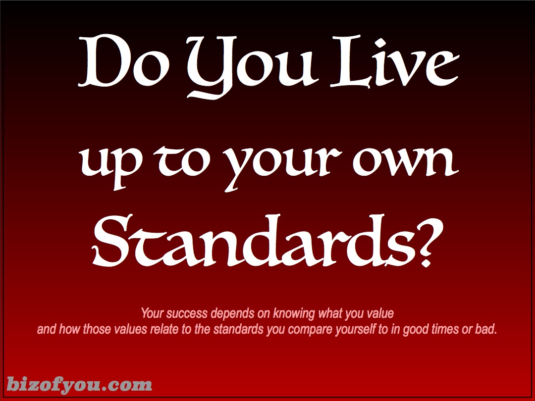 It is imperative we understand what we value in life and the standards we expect of ourselves if we are to manage our personal biz successfully. It’s important to understand the values and standards of those we interact with if we choose to allow them to influence our success.